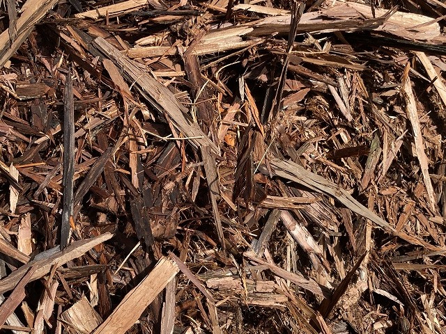 この細長い木の皮がバークです。チップよりも長いです。