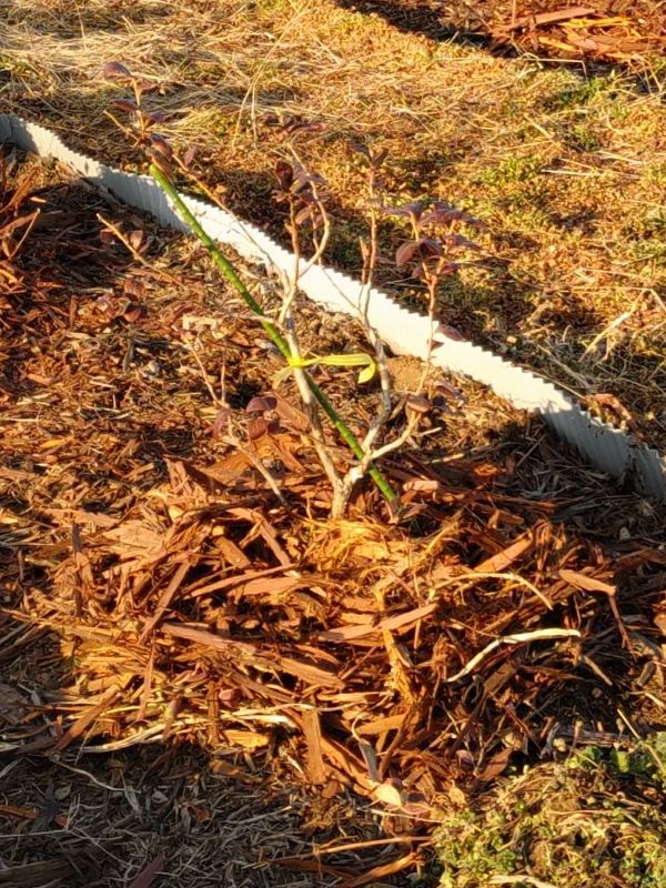 ブルーベリーの根本にバークを被せました。最近剥がれた樹皮なので、まだ茶色が濃いです。