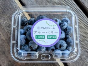 ブルーベリー出荷に合わせて、パッケージ容器に貼るマルタファームのシールを作りました。本日から、近所の八百屋さん「らふるった」様にて販売しています!